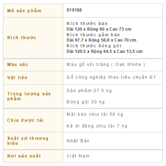 K.thước sản phẩm | Dài 120 x Rộng 60 x Cao 73 cm |