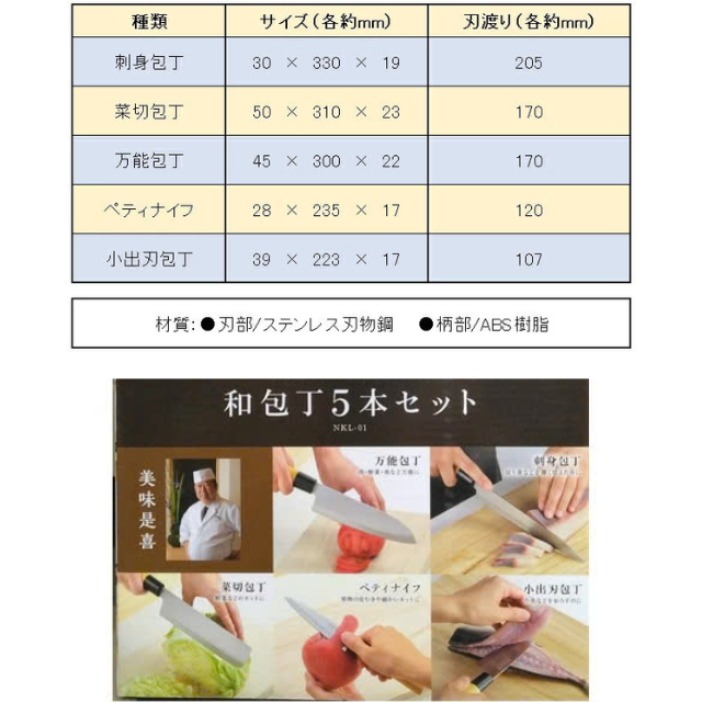 | K.thước sản phẩm | Bộ dao Có 5 kích thước |