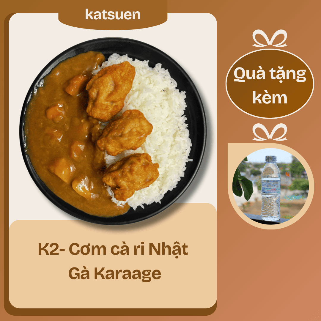 Cơm cà ri Gà Karaage là sự hòa quyện của viên cà ri nhập khẩu trực tiếp Nhật Bản, cùng với rau củ quả, kết hợp với món Gà Karaage quen thuộc của Nhật Bản.